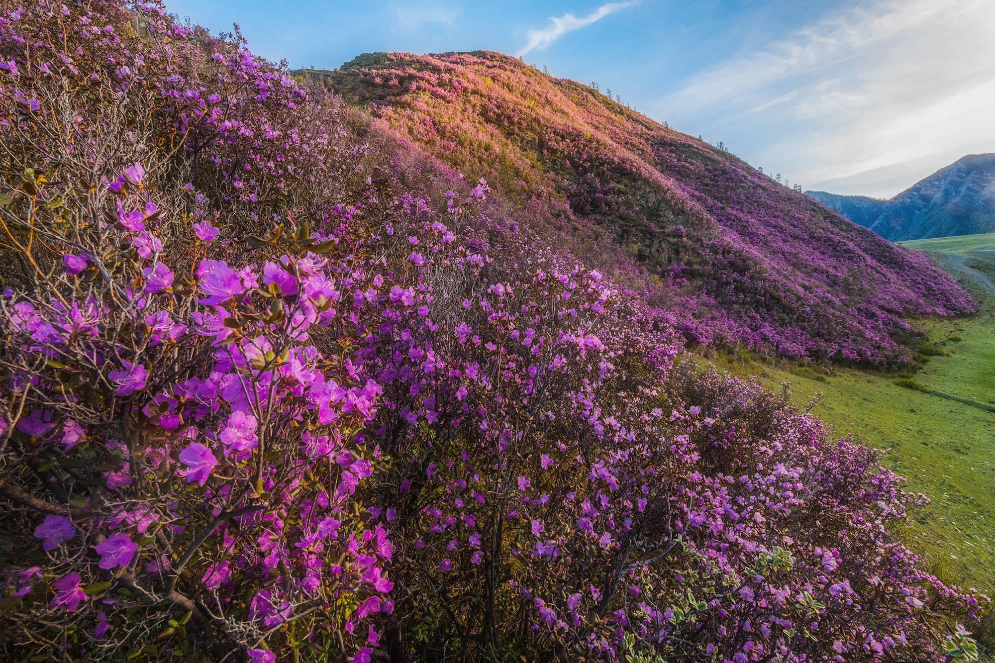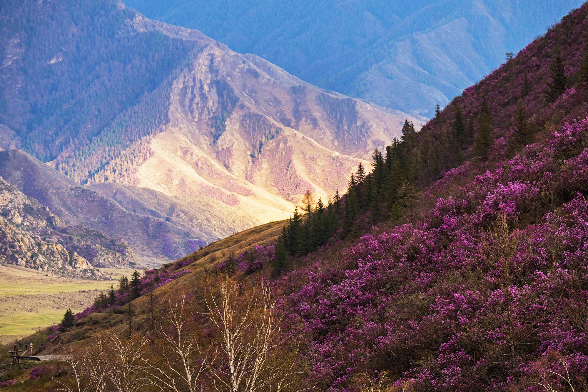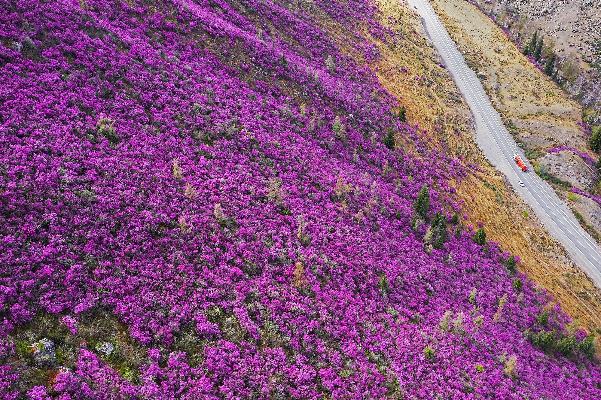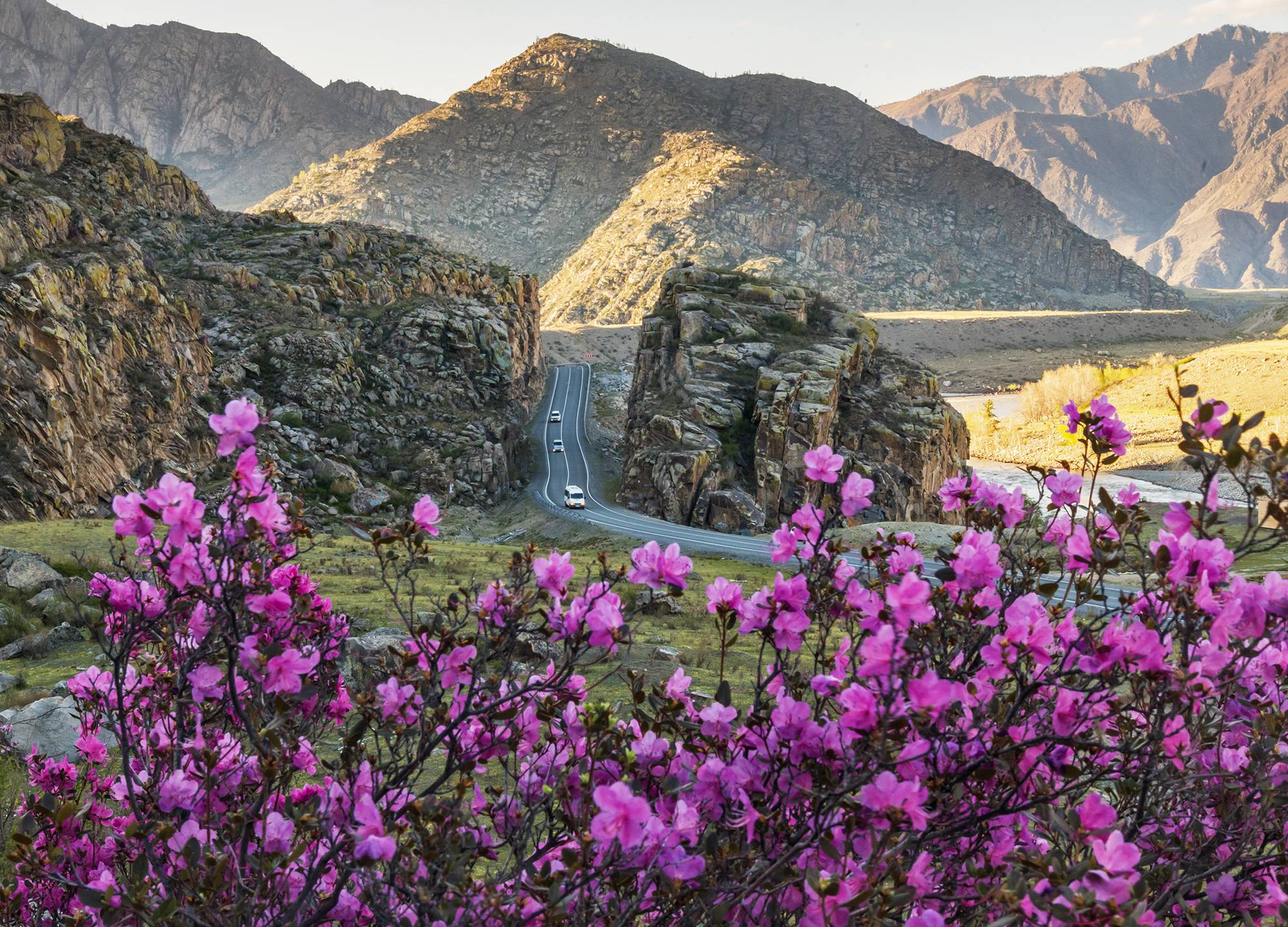 Завтрак и дорога домой, но по пути вас ждут остановки у склонов, покрытых цветущим маральником. Каждый кадр здесь — готовая картина: розовые волны на фоне заснеженных вершин.